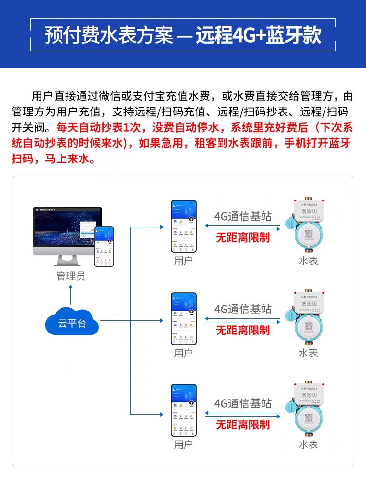 通信模塊使水表能夠與其他設備(如用戶終惴或供水公司的管理系統)進行數據交換,這通常通過無線網絡4G+藍牙實現,確保數據傳輸的安全性和可靠性。4.顯示屏與操作界面